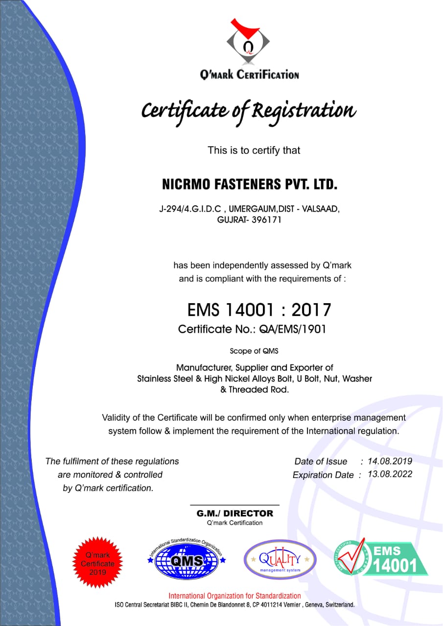 We guarantee the origins of the substances used and supply certificates from the steel works and all other intermediaries till our customers. We ensure 100% traceability for our parts, from raw material to manufacturing processes. NICRMO FASTENERS PVT LTD is the unique supplier of fasteners who can ensure a full traceability of all its products.