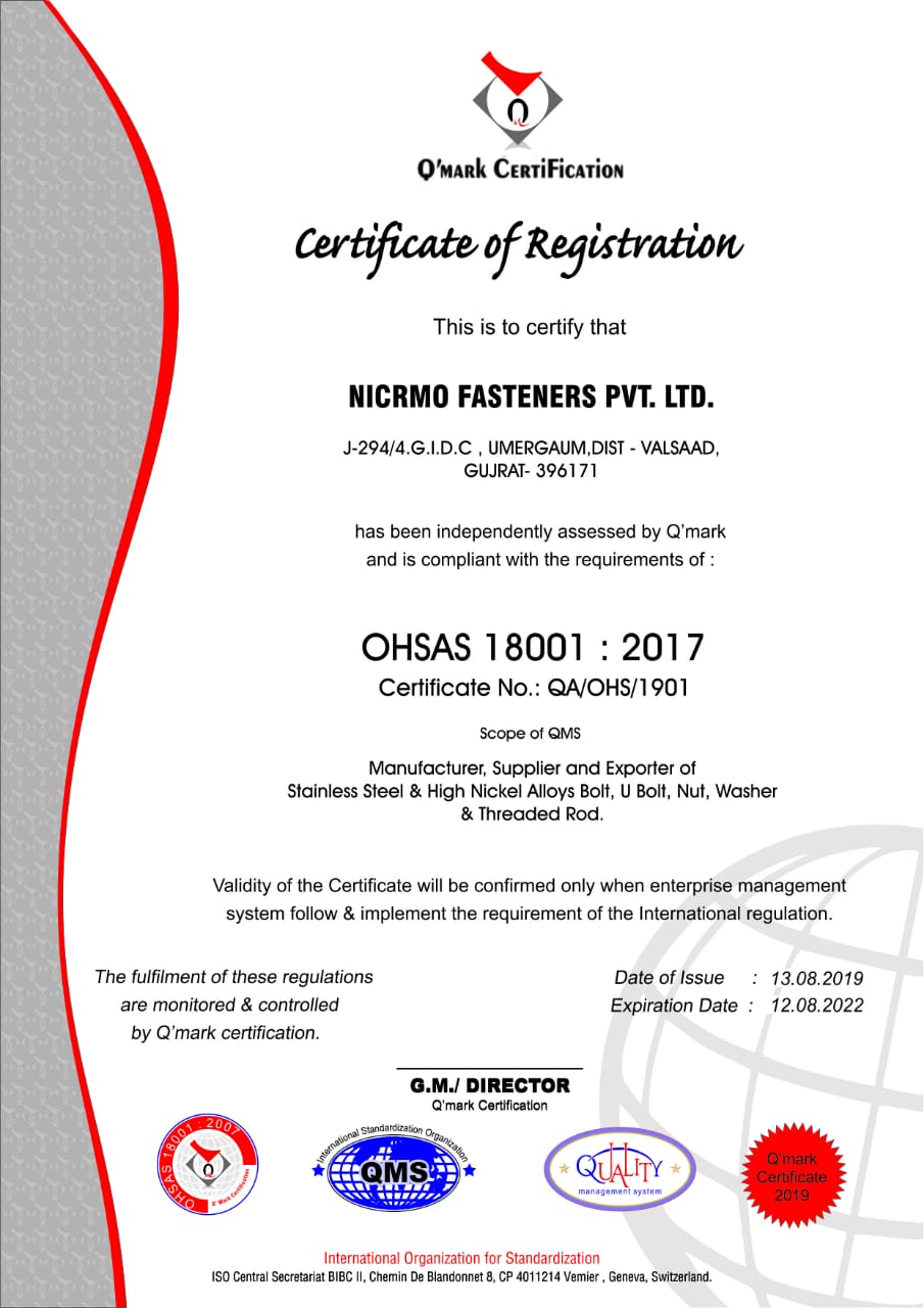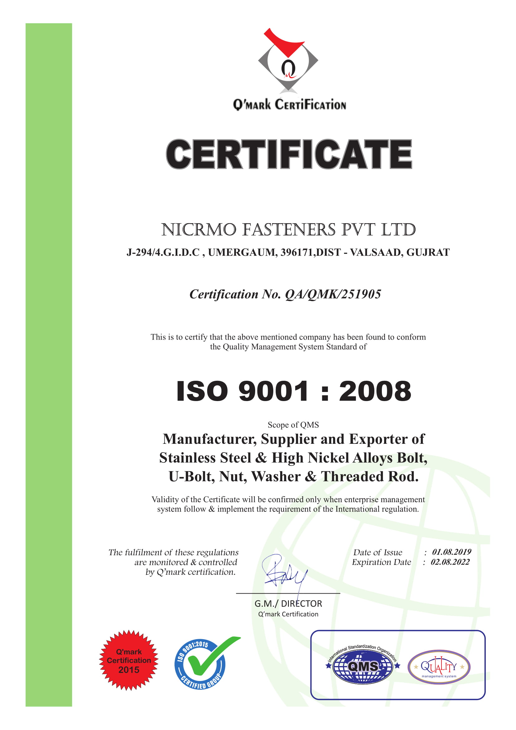 As a manufacturer, NICRMO FASTENERS PVT LTD ensures optimum quality control.