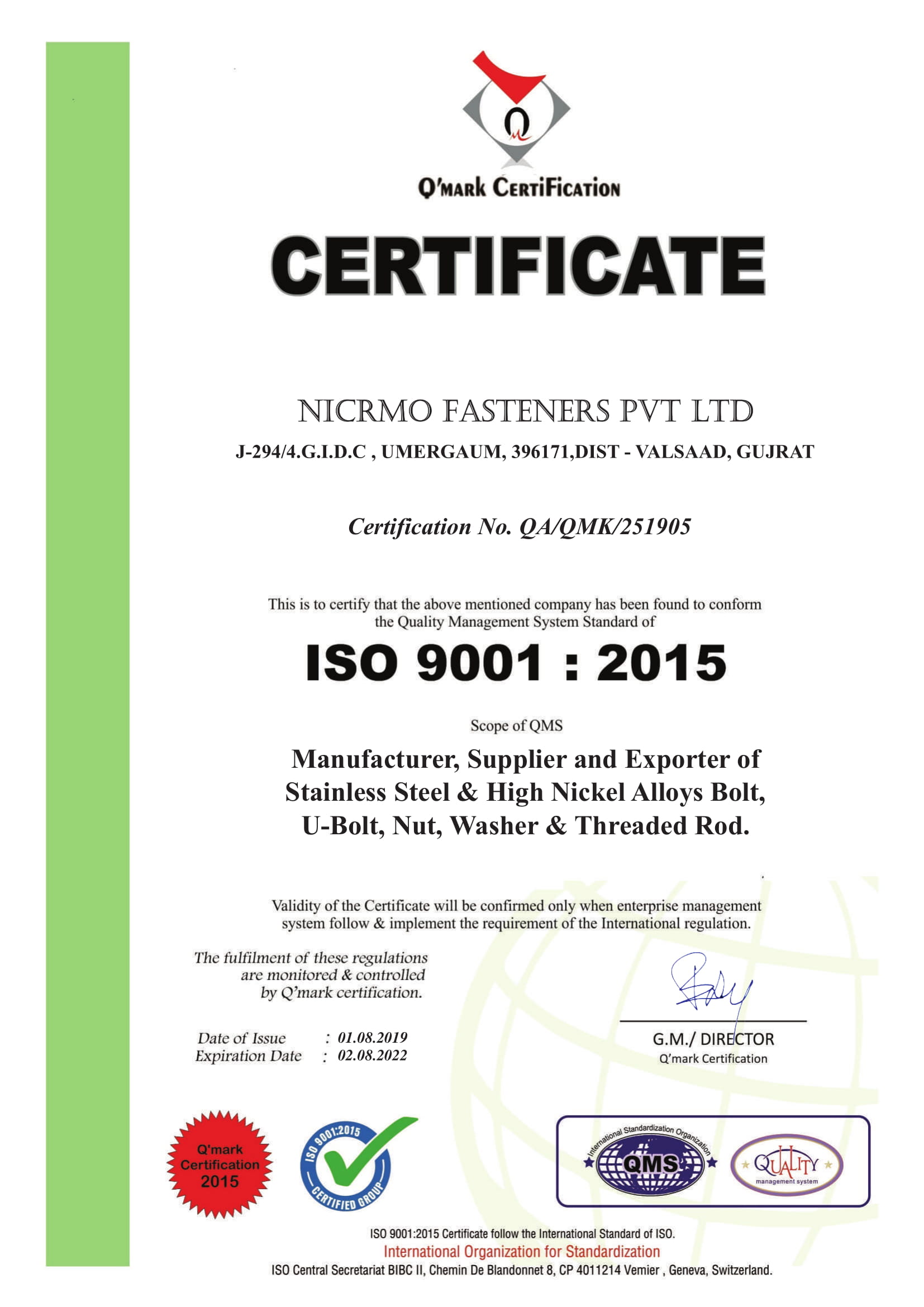 NICRMO FASTENERS PVT LTD applies a precise Quality charter which specifies systematic scheduled actions, thereby guaranteeing that your requirements are 100% satisfied.
